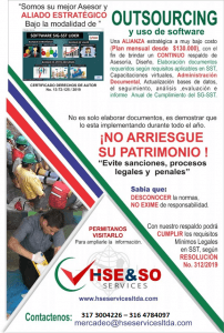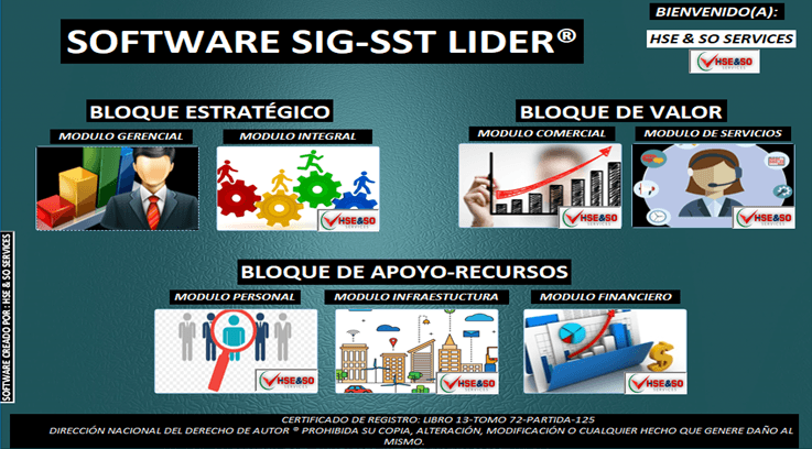 Alianza estratégica a bajo costo, disponibilidad, agilidad, plataformas, TIC y Software, para respaldo integral en SG y SST con nuestro Software SIG SST®, que le permite tener control total sobre su SGSST. Respaldo integral para todo tipo de sistema de gestión, incluyendo SST, con nuestro software SIG SST, le permitirá tener un control documental total y organizado de sus sistemas de gestión, facilitando tener acceso a la información, al profesional que llegue nuevo a la empresa en caso que se rote o cambie de profesional responsable del sistema o sistemas.